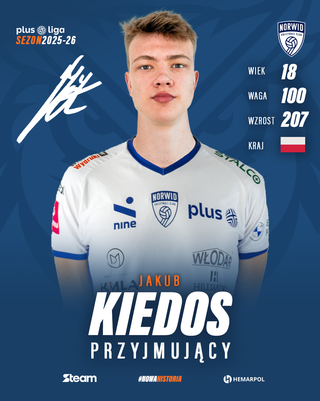 Jakuba kibice Norwida mogą już kojarzyć – w przeszłości reprezentował nasz klub w rozgrywkach młodzieżowych, występując w błękitno-granatowych barwach. Teraz wraca do Częstochowy jako pełnoprawny zawodnik pierwszego zespołu, gotowy do rywalizacji na najwyższym poziomie.